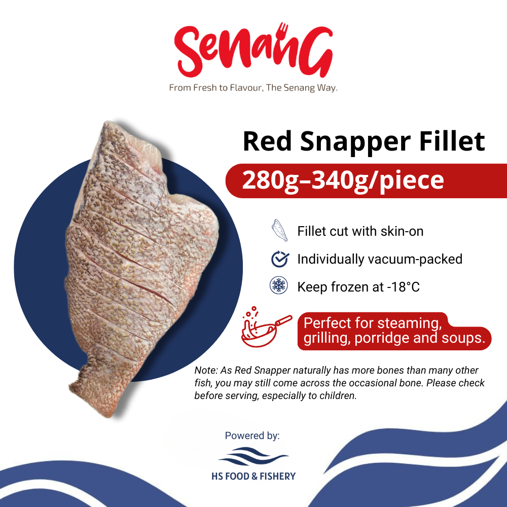 Enjoy the delightful taste of Senang Foods Premium Fresh Frozen Red Snapper Fillet, perfect for your seafood cravings.